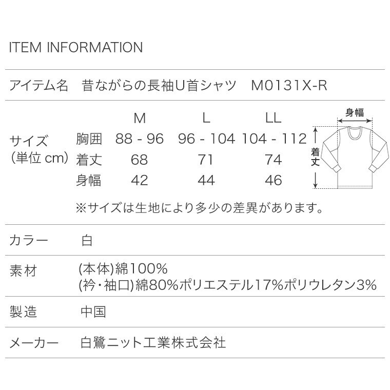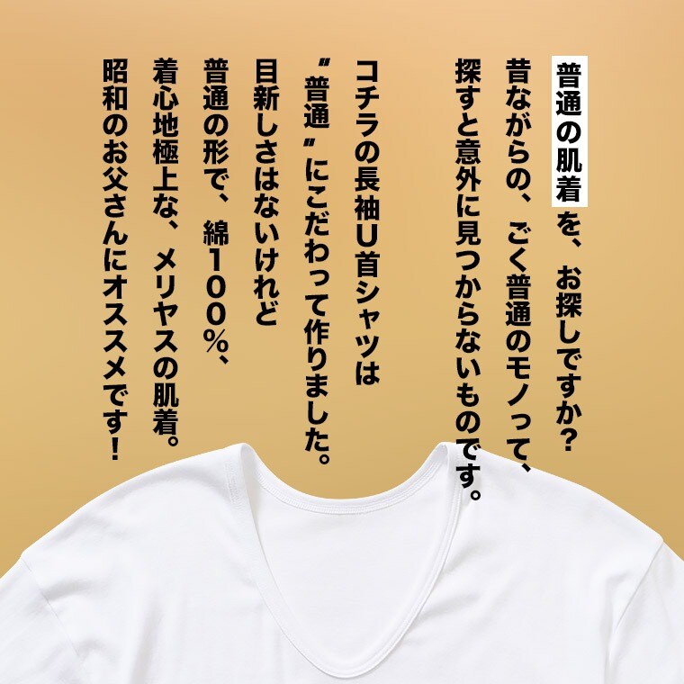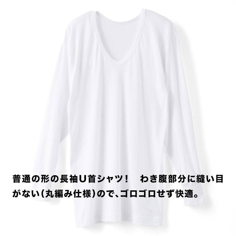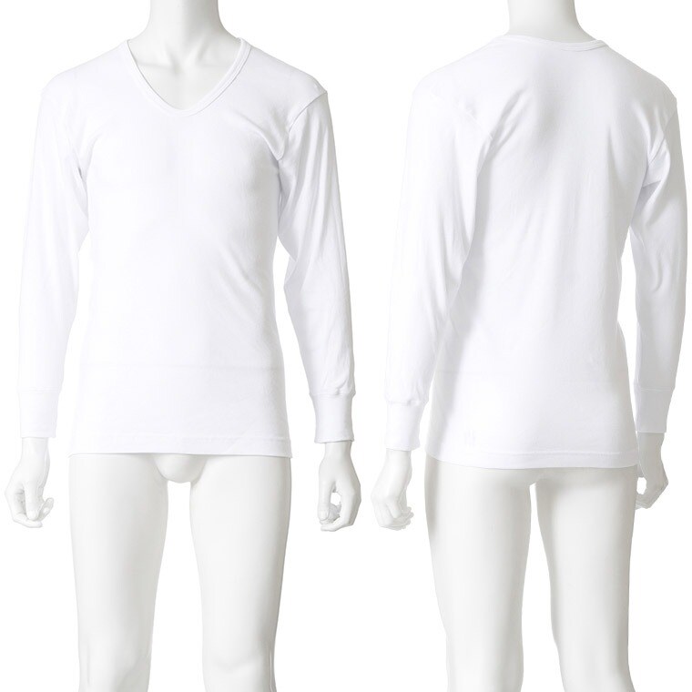 メンズ インナー 綿100% 肌着 普通の長袖シャツ U首 年間 クルーネック 下着 紳士 M0131X-E