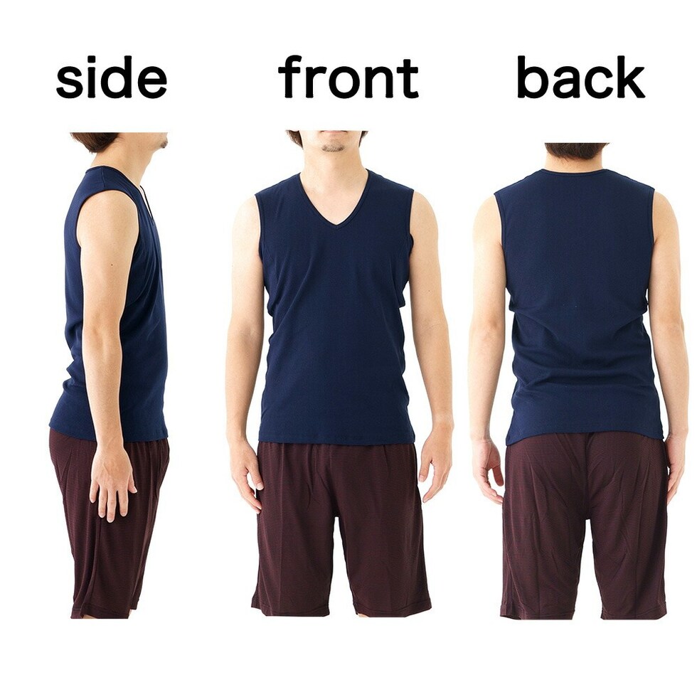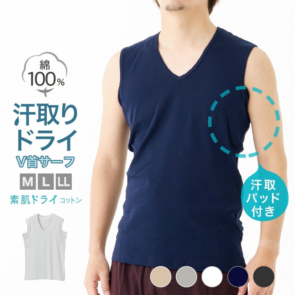 メンズ インナー シャツ 2枚組 綿100% 汗取り サーフ V首 素肌ドライ 春夏 脇汗 汗とり パット付き ノースリーブ 肌着 紳士 男性 M4440P-E 涼しい