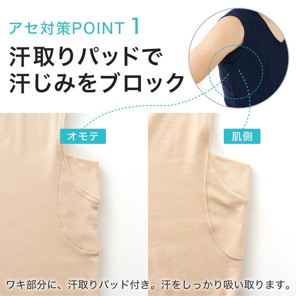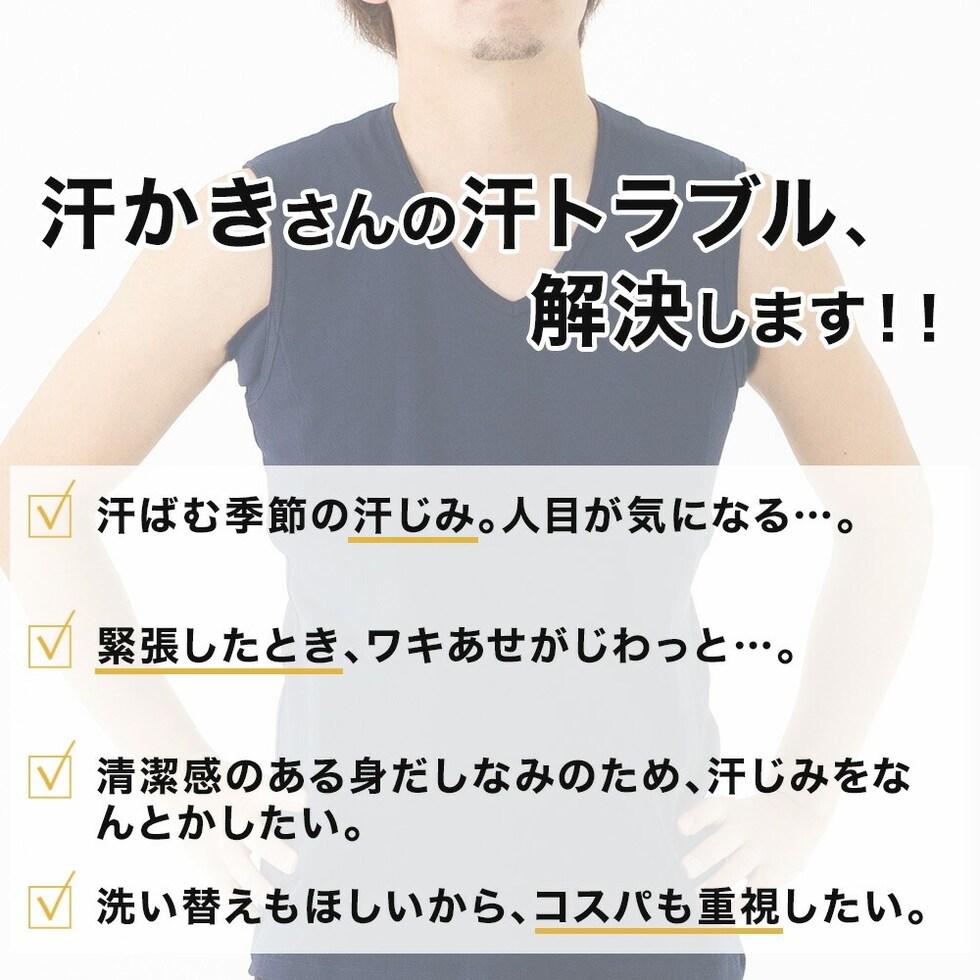 メンズ インナー シャツ 2枚組 綿100% 汗取り サーフ V首 素肌ドライ 春夏 脇汗 汗とり パット付き ノースリーブ 肌着 紳士 男性 M4440P-E 涼しいのレビュー