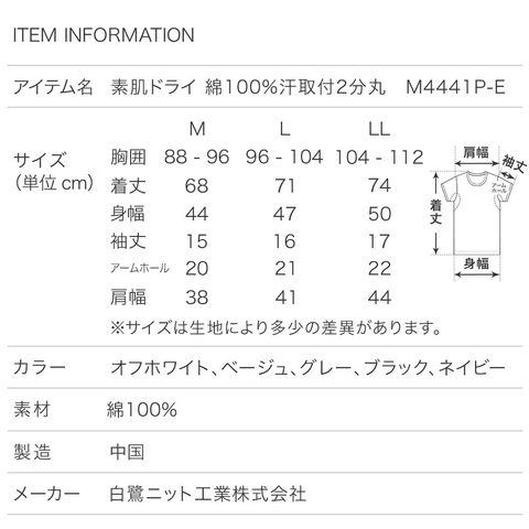 メンズ インナー シャツ 半袖 2枚組 綿100% 汗取り 2分袖 丸首 素肌ドライ 春夏 脇汗 汗とり パット付き 吸汗速乾 紳士 男性 肌着 M4441P-E 涼しい