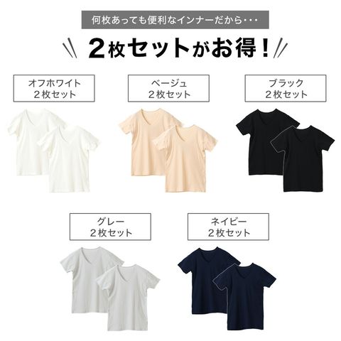 メンズ インナー シャツ 半袖 2枚組 綿100% 汗取り 2分袖 V首 素肌ドライ 春夏 Vネック 脇汗 汗とり パット付き 吸汗速乾 紳士 男性 肌着 M4442P-E 涼しい