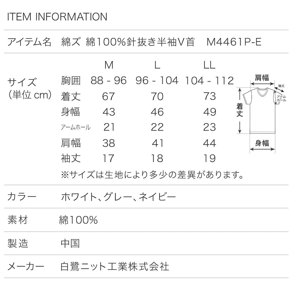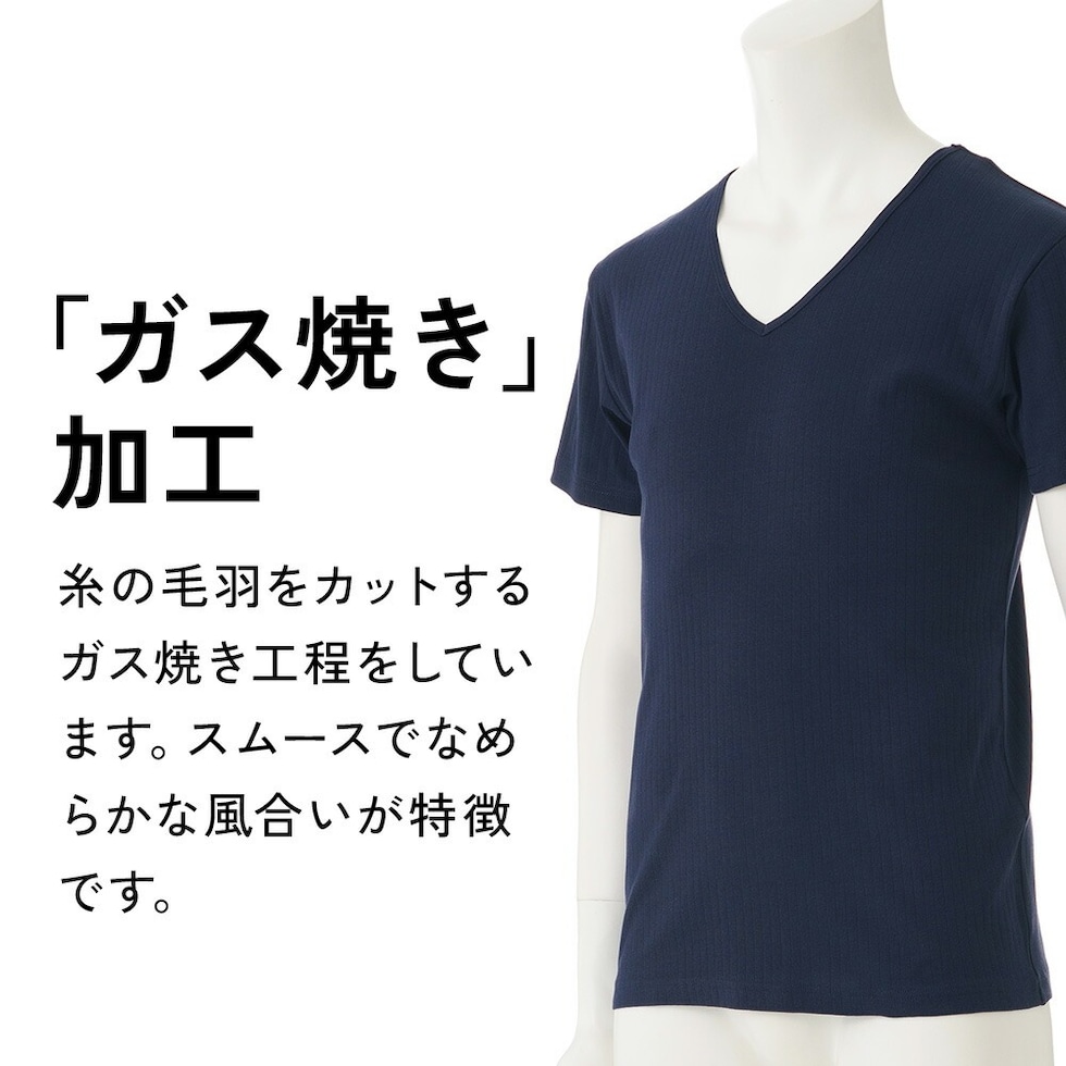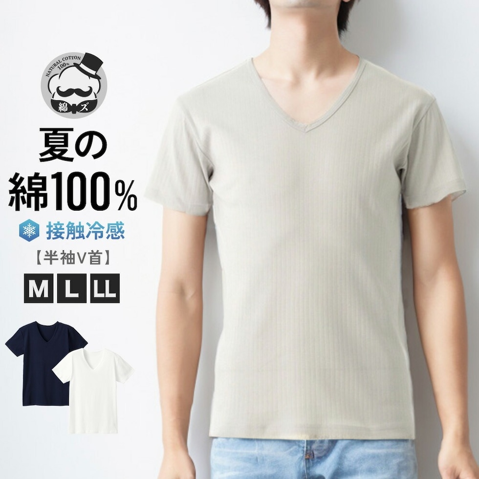 メンズ インナー 半袖 接触冷感 綿100% 綿ズ V首 春夏 夏用 Vネック コットン 針抜き 男性 紳士 肌着 M4461P-E 涼しい