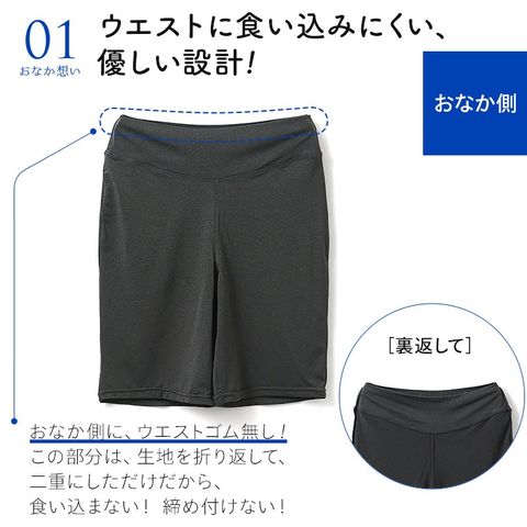 おなか想い 3分丈 スパッツ セットでお得! レディース 年間 もも裏 汗対策 汗取り インナー ボトムス オーバーパンツ インナーパンツ レギンス 締め付けない くいこみにくい ゴム無し ストレッチ お腹 対策 暖かい 深ばき 深履き 温活 S/M/L/LL M5305K-E
