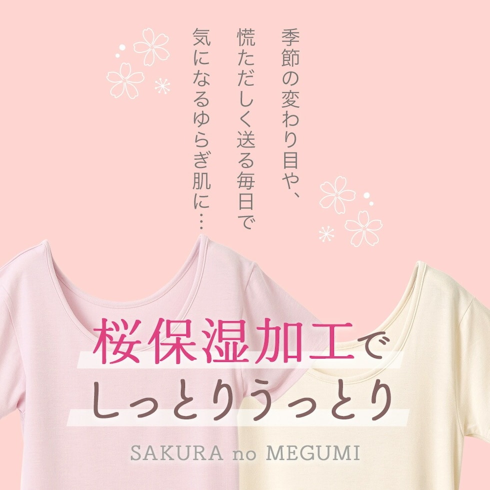レディース インナー 半袖 春 3分袖 保湿 桜のめぐみ 桜加工 保湿効果 抗菌防臭 婦人 女性 下着 肌着 M5462P-E