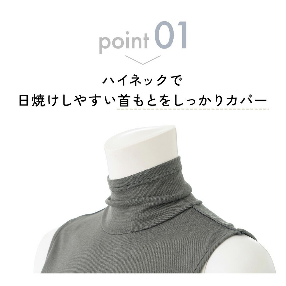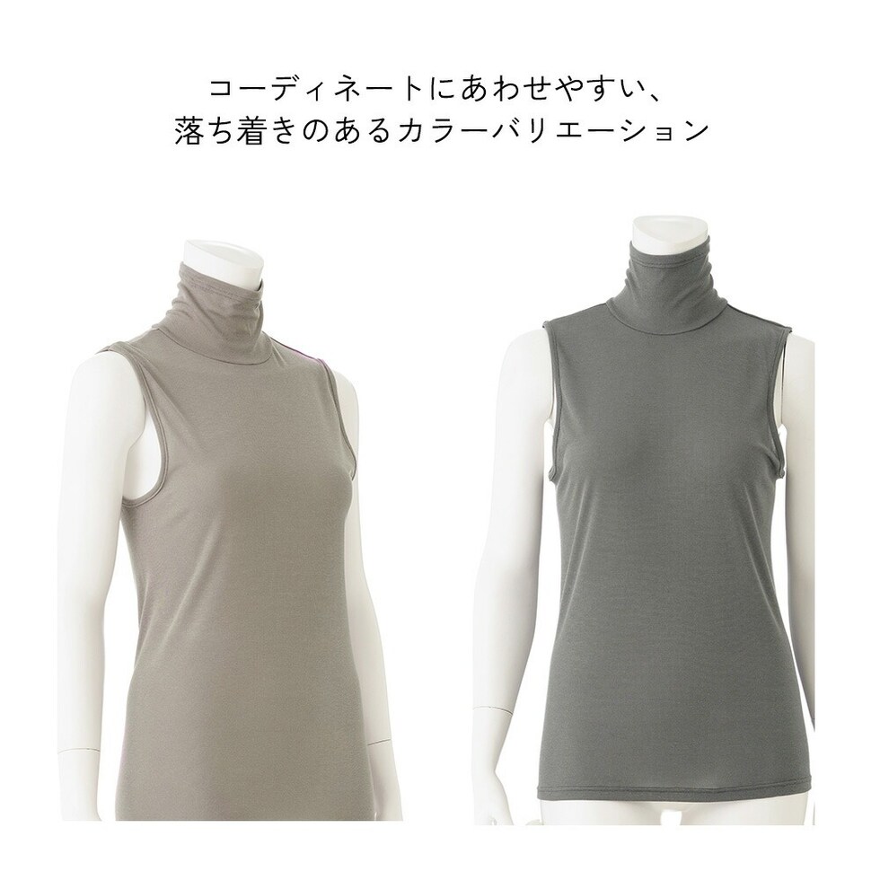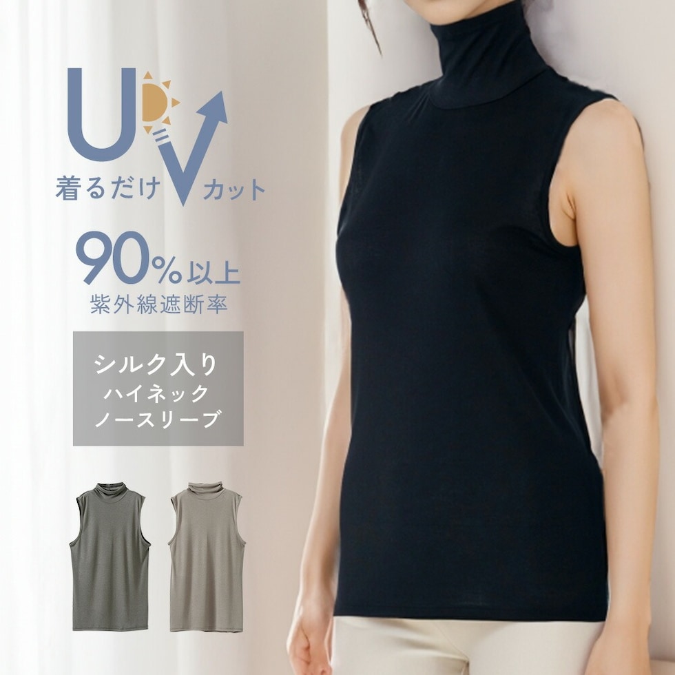 レディース インナー ノースリーブ ハイネック 春夏用 UVカット UV対策 シルク入り 着る日焼け止め 女性 肌着 婦人 下着 M5470P-E 涼しい