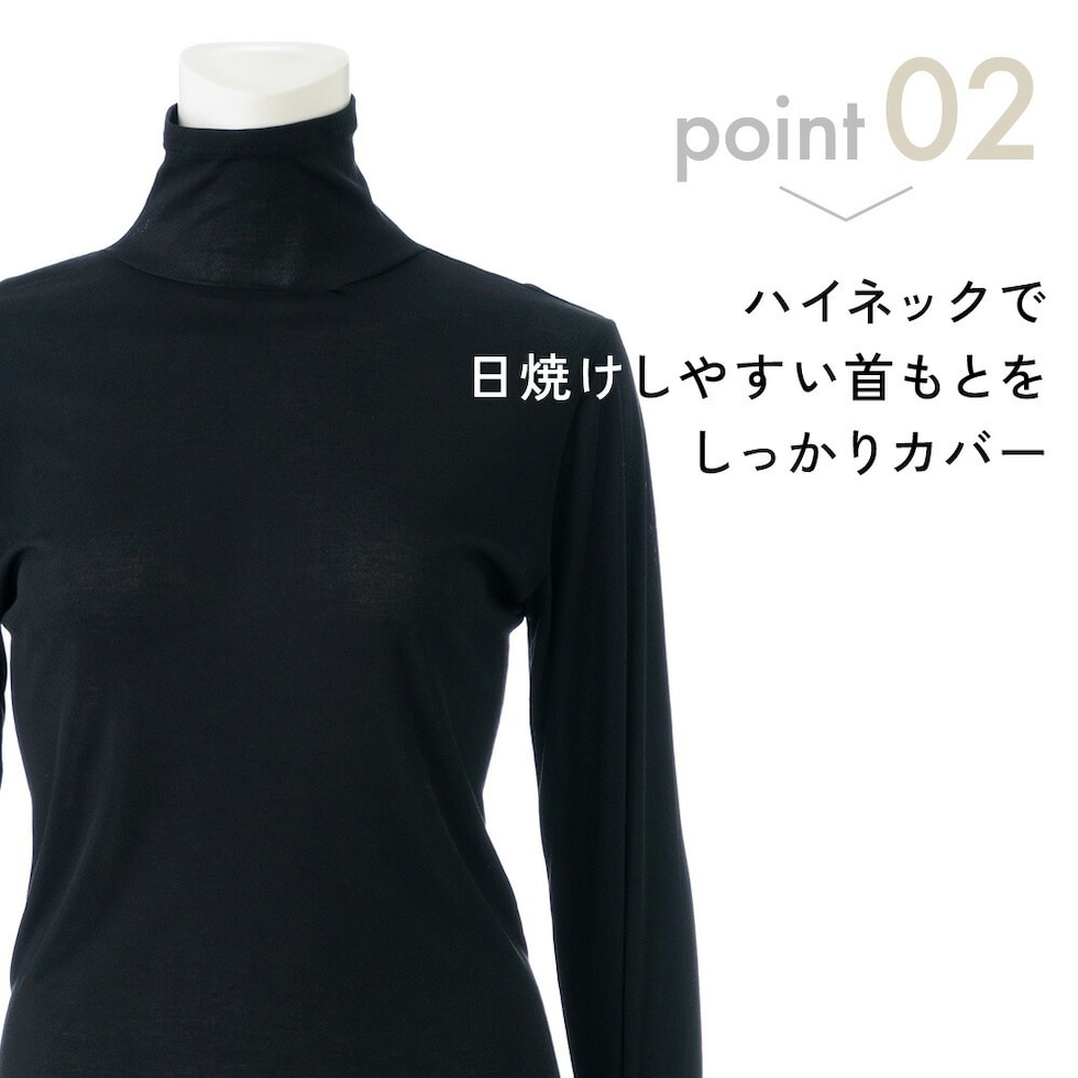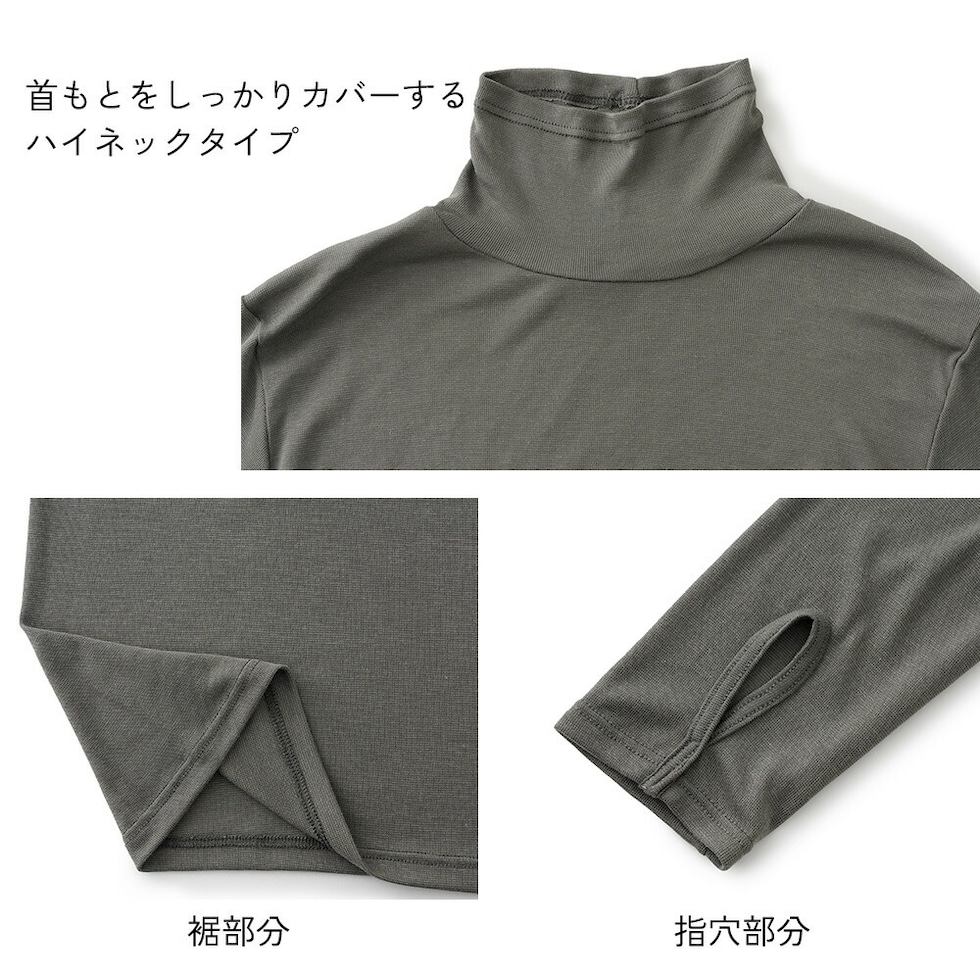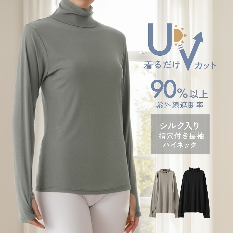 レディース インナー シャツ 長袖 ハイネック 指穴付き 春夏用 UVカット UV対策 シルク入り 着る日焼け止め 女性 肌着 婦人 下着 M5472P-E 涼しい