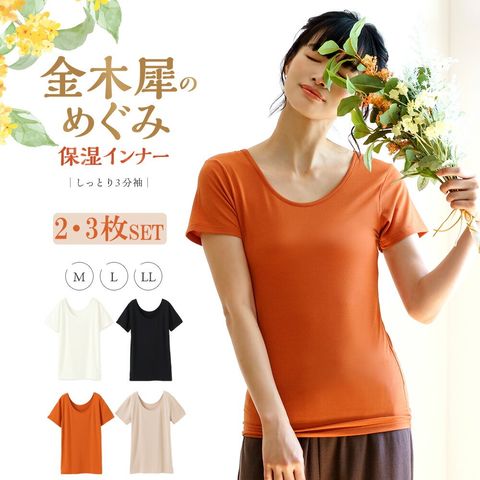 金木犀のめぐみ 3分袖 保湿インナー 金木犀 加工 しっとり 保湿 ストレッチ ボタニカル インナー 秋冬 レディース お肌に優しい 乾燥肌 乾燥 キンモクセイ 婦人 女性 下着 肌着 M5481P-E