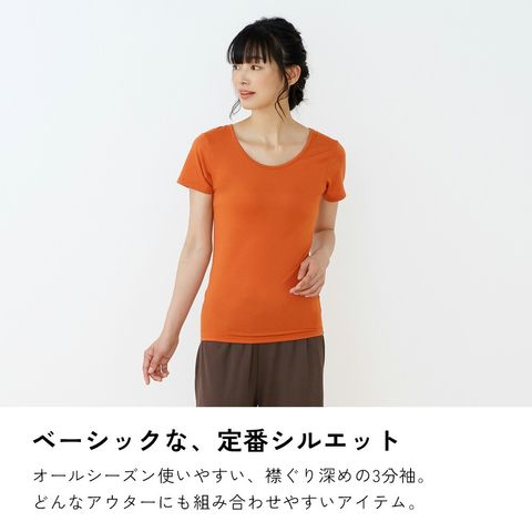 【スペック】 アイテム名:T/Rベア天金木犀加工 3部袖 M5481P-E サイズ: M / L / LL バスト:79-87 / 86-94 / 93-101 着丈:60 / 63 / 66 身幅:36 / 39 / 42 ※サイズは生地により多少の差異があります。 素材:(本体) ポリエステル75% レーヨン20% ポリウレタン5% 製造:中国 金木犀のめぐみ 金木犀加工 保湿インナー しっとり感 保湿 ストレッチ 動きやすい 3分袖 インナー 秋冬 レディース お肌に優しい 婦人 女性 下着 肌着 24AW ベージュ/オレンジ/ブラック/オフホワイト M/L/LL M5481P-E