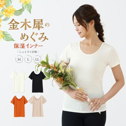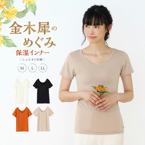 レディース インナー 金木犀のめぐみ 3分袖 保湿インナー 金木犀 加工 しっとり 保湿 ストレッチ ボタニカル 秋冬 お肌に優しい 乾燥肌 乾燥 キンモクセイ 婦人 女性 下着 肌着 24AW M/L/LL M5481P-E 防寒