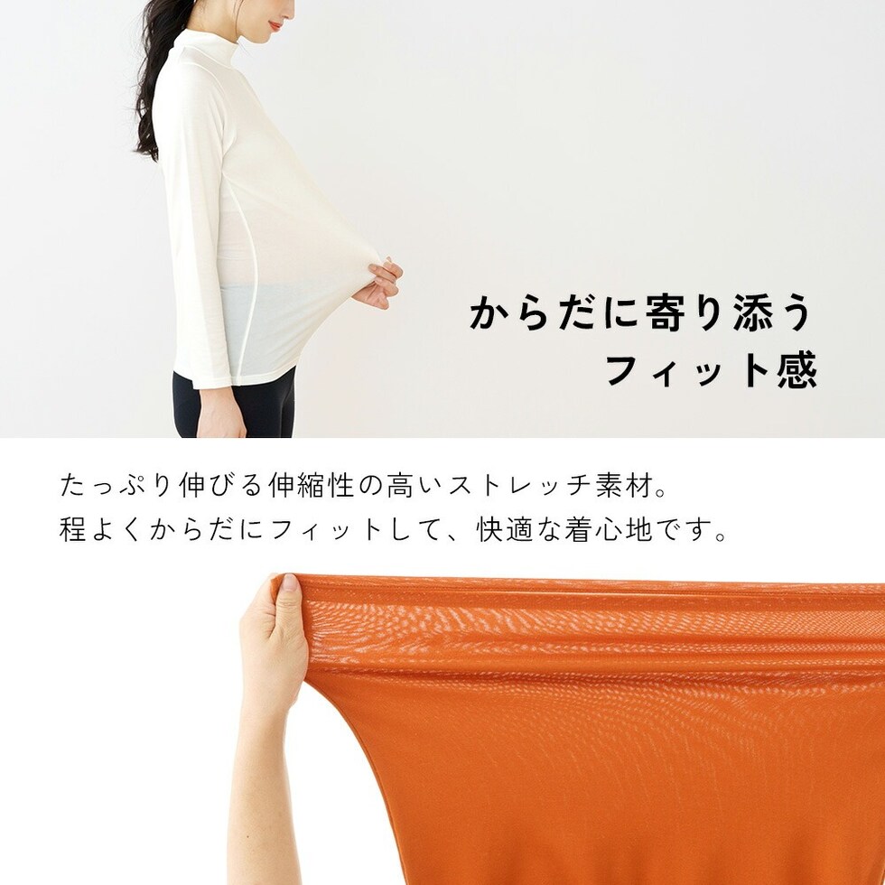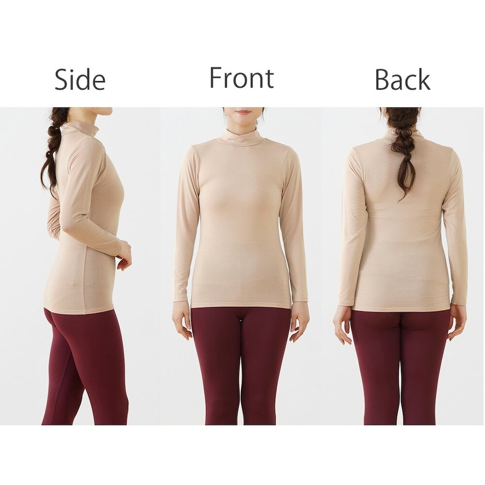 【スペック】 アイテム名:T/Rベア天金木犀加工 ハイネック長袖 M5483P-E サイズ: M / L / LL バスト:79-87 / 86-94 / 93-101 着丈:60 / 63 / 66 身幅:36 / 39 / 42 ※サイズは生地により多少の差異があります。 素材:(本体) ポリエステル75% レーヨン20% ポリウレタン5% 製造:中国 金木犀のめぐみ 金木犀加工 保湿インナー しっとり感 保湿 ストレッチ 動きやすい ハイネック インナー 秋冬 レディース お肌に優しい 婦人 女性 下着 肌着 24AW ベージュ/オレンジ/ブラック/オフホワイト M/L/LL M5483P-E