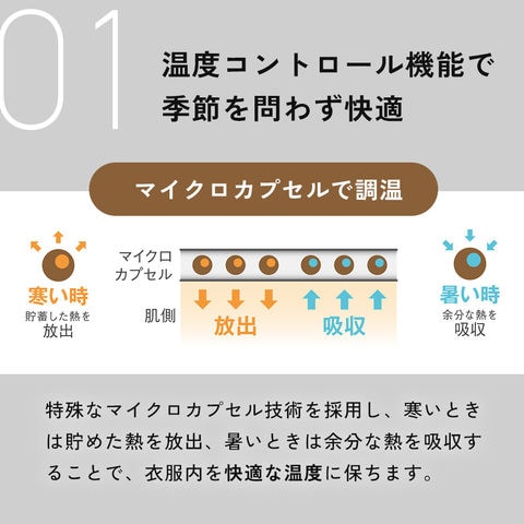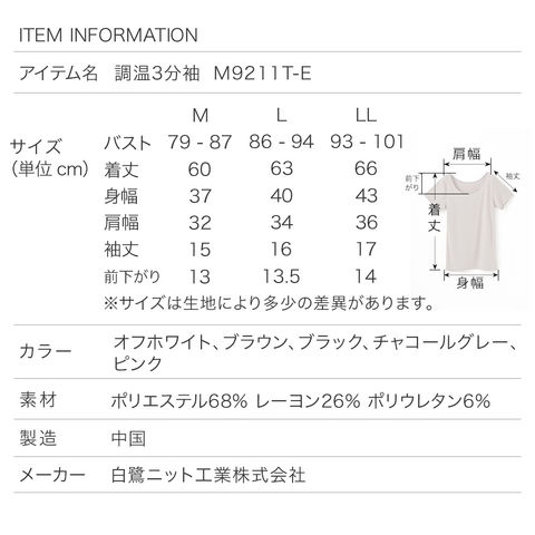レディース インナー 温度調整 3分袖 調温 女性 婦人 下着 オフホワイト/ブラウン/ブラック/チャコールグレー/ピンク M/L/LL M9211T-E 肌着
