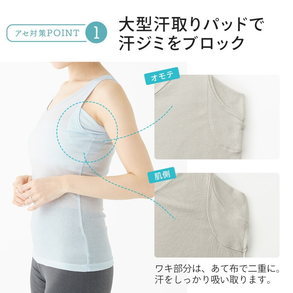 レディース インナー 素肌ドライ 大汗取り タンクトップ セットでお得!! 脇汗 汗取り パッド付き 春夏 汗染み 防止 汗 対策 ノースリーブ 綿混 汗とり パット付き 吸汗速乾 24SS M9471P-E 涼しい 肌着