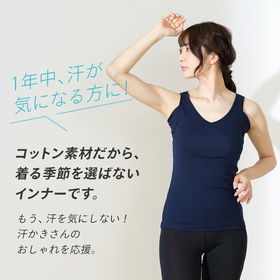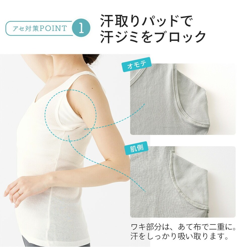 レディース インナー 素肌ドライ 綿100% 汗取り タンクトップ セットでお得!! 脇汗 汗取り パッド付き 春夏 汗染み 防止 汗 対策 ノースリーブ 綿 汗とり パット付き 吸汗速乾 24SS S/M/L/LL M9481P-E 涼しい 肌着