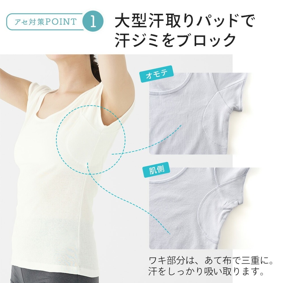 レディース インナー シャツ 長袖 2枚組 素肌ドライ 綿100% 大汗取り 脇汗 8分袖 パッド付き 春夏 汗染み 防止 汗 対策 綿混 汗とり パット付き 吸汗速乾 S/M/L/LL M9493P-E 涼しい 肌着