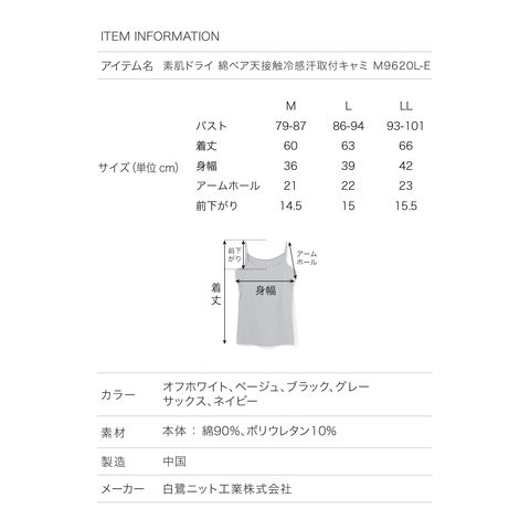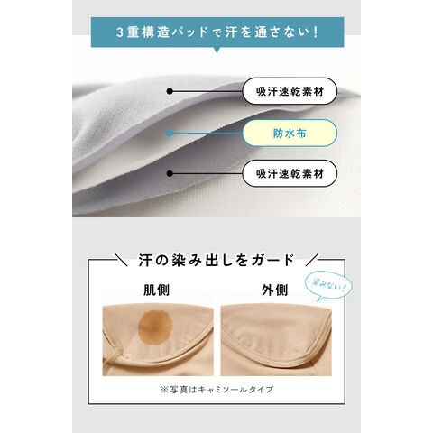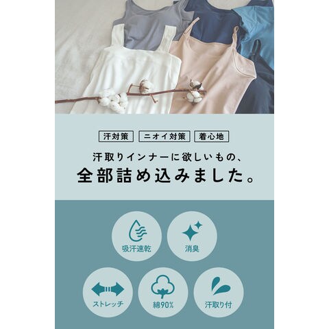 レディース インナー シャツ 素肌ドライ 綿100% 大汗取り インナーキャミソール 脇汗 吸汗速乾 汗取り パッド付き 春夏 汗染み 防止 汗 対策 綿 肌に優しい 汗とり パット付き 防災 M9620L-E 涼しい 肌着