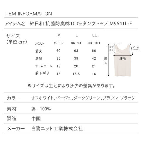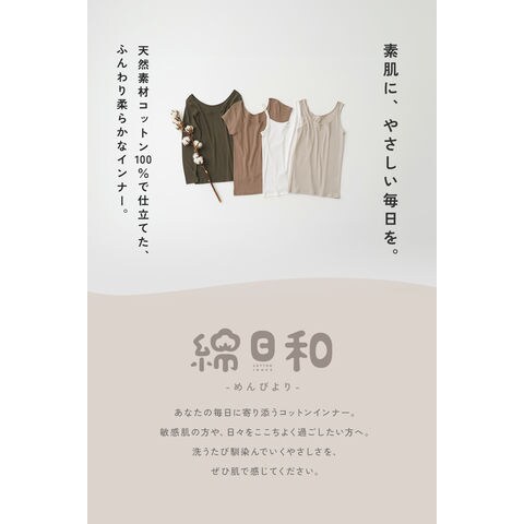 レディース インナー シャツ 綿日和 綿100% タンクトップ 脇汗 吸汗速乾 汗取り パッド付き 春夏 汗染み 防止 汗 対策 綿 肌に優しい 汗とり パット付き 防災 M9641L-E 涼しい 肌着