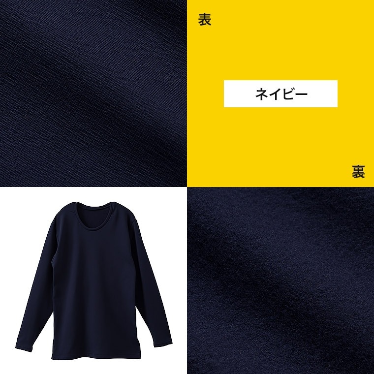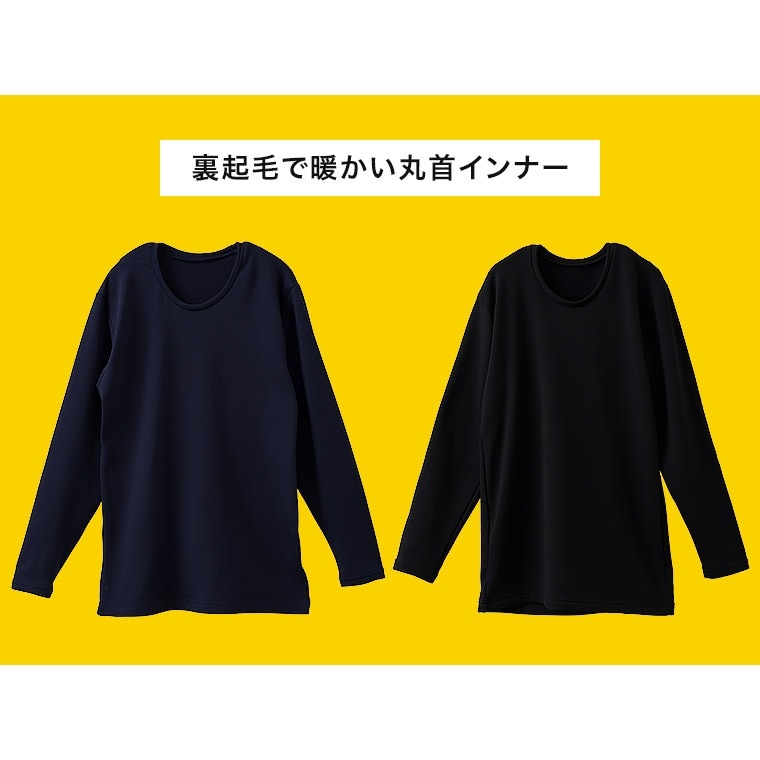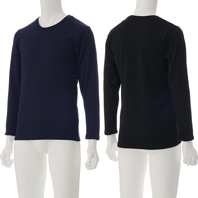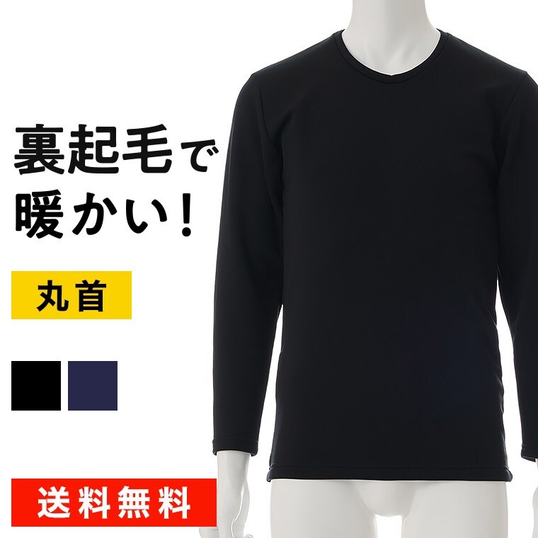 メンズ インナー シャツ 長袖 裏起毛 丸首 秋冬 暖かい あったか あたたかい 保温 防寒 ストレッチ 男性 紳士 下着 肌着 ブラック/ネイビー M/L/LL P0350E-R