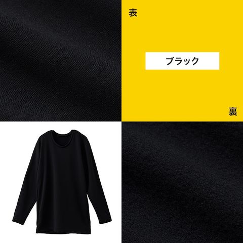 メンズ インナー シャツ 長袖 裏起毛 丸首 秋冬 暖かい あったか あたたかい 保温 防寒 ストレッチ 男性 紳士 下着 肌着 ブラック/ネイビー M/L/LL P0350E-R