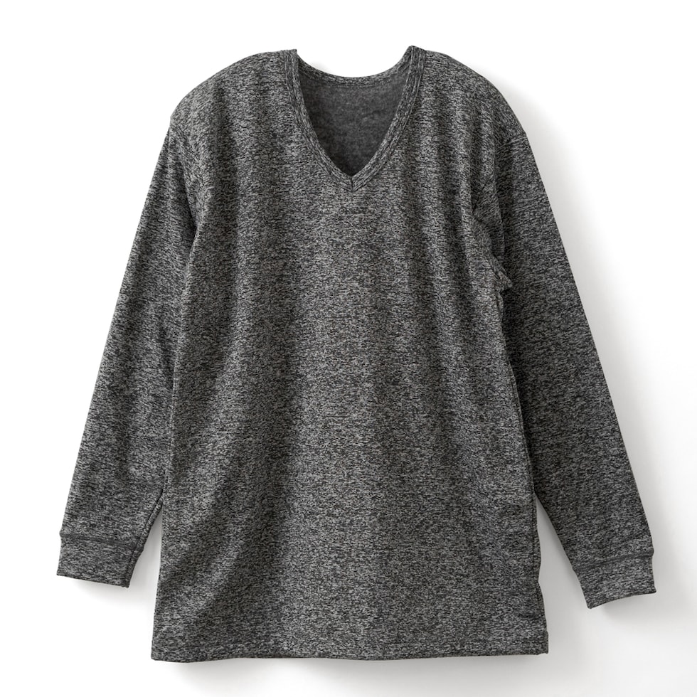 メンズ インナー シャツ 長袖 厚手 裏起毛 Vネック 杢カラー 秋冬 暖かい あったか あたたかい 厚地 厚い 保温 防寒 ストレッチ 杢柄 男性 紳士 下着 肌着 ブラック/チャコールグレー M/L/LL P0381C-RT