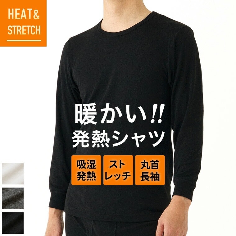 メンズ インナー シャツ 長袖 HEAT&STRETCH 発熱 丸首 秋冬 吸湿 防寒 暖かい あったか あたたかい 薄い ストレッチ アンダーシャツ アンダーウェア 男性 紳士 下着 肌着 ヒートテック P0460E-R