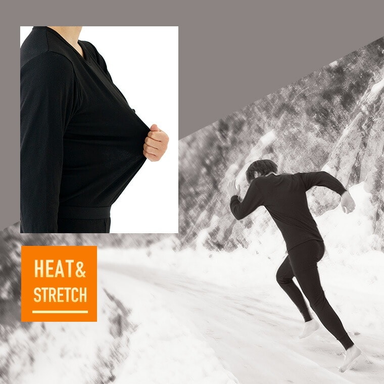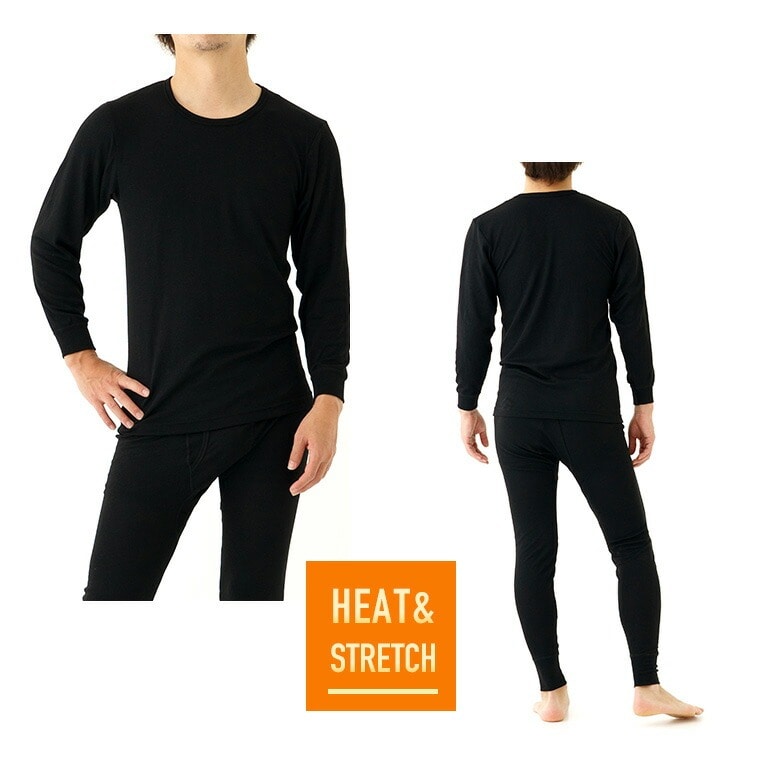 メンズ インナー シャツ 長袖 HEAT&STRETCH 発熱 丸首 秋冬 吸湿 防寒 暖かい あったか あたたかい 薄い ストレッチ アンダーシャツ アンダーウェア 男性 紳士 下着 肌着 ヒートテック P0460E-R