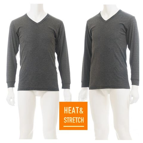 HEAT&STRETCH 発熱 ロング タイツ メンズ 秋冬 吸湿 ズボン下 スパッツ パンツ 防寒 暖かい あったか あたたかい 薄い ストレッチ アンダーウェア 男性 紳士 下着 肌着 ヒートテック グレー/ブラック M/L/LL P0465E-R