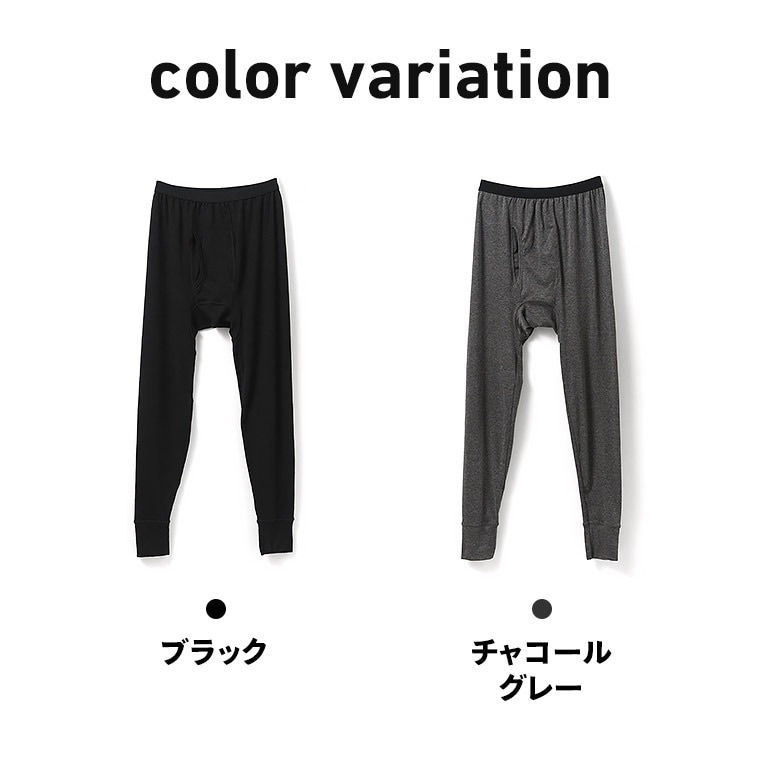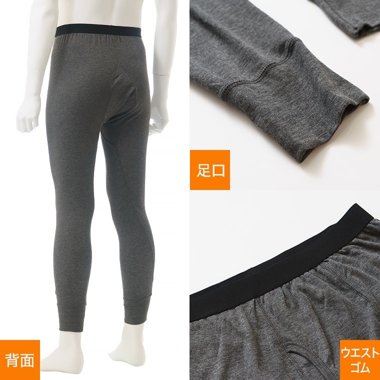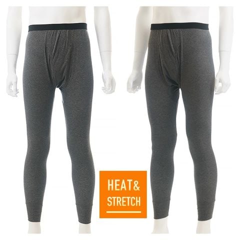 メンズ 発熱 ロング タイツ 秋冬 吸湿 ズボン下 スパッツ パンツ 防寒 暖かい あったか あたたかい 薄い ストレッチ アンダーウェア 男性 紳士 下着 肌着 HEAT&STRETCH グレー/ブラック M/L/LL P0465E-RT