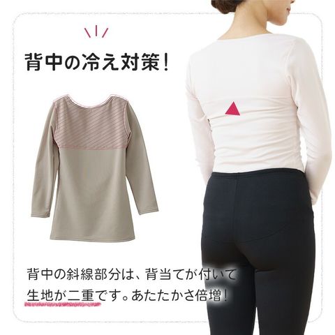 レディース インナー 長袖 裏起毛 裏ボア 8分袖 あったか 秋冬 背中 冷え 対策 暖かい あたたかい 防寒 保温 背 当て 付き 丸首 女性 婦人 下着 肌着 ストレッチ P5820E-RT
