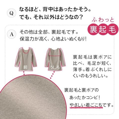 レディース インナー 長袖 裏起毛 裏ボア 8分袖 あったか 秋冬 背中 冷え 対策 暖かい あたたかい 防寒 保温 背 当て 付き 丸首 女性 婦人 下着 肌着 ストレッチ P5820E-RTのレビュー