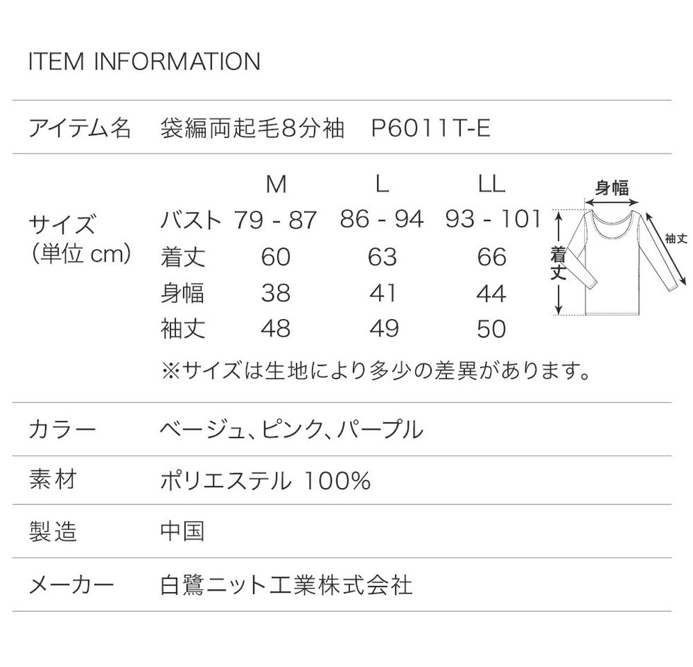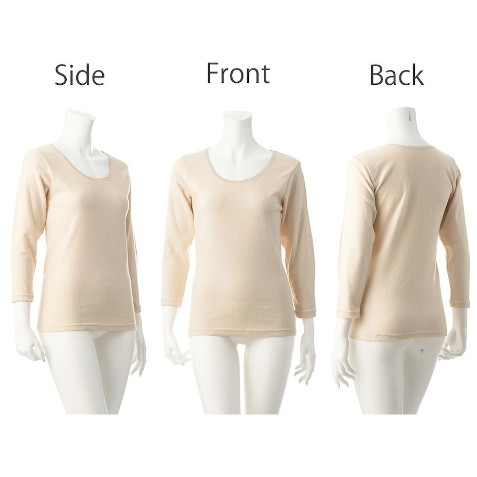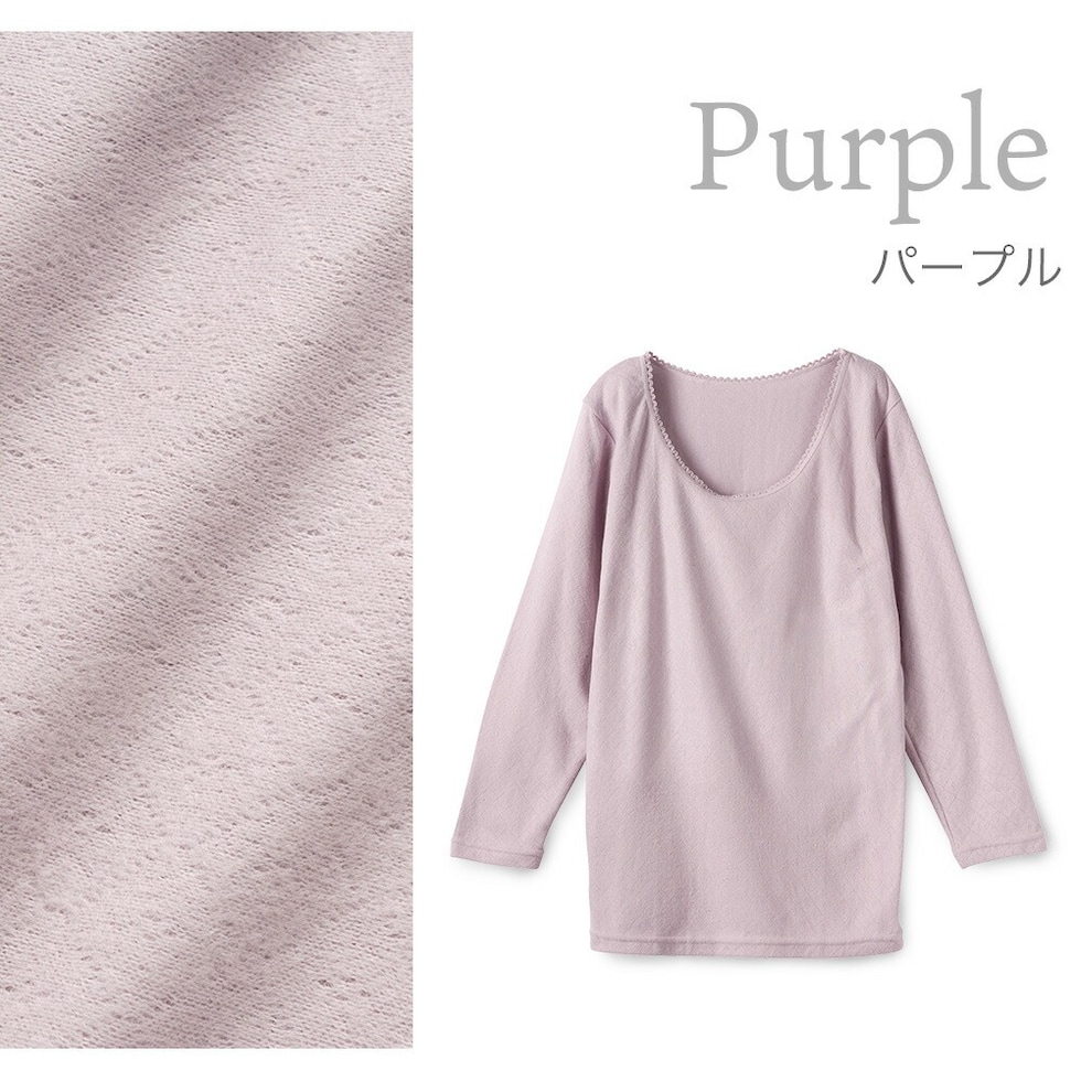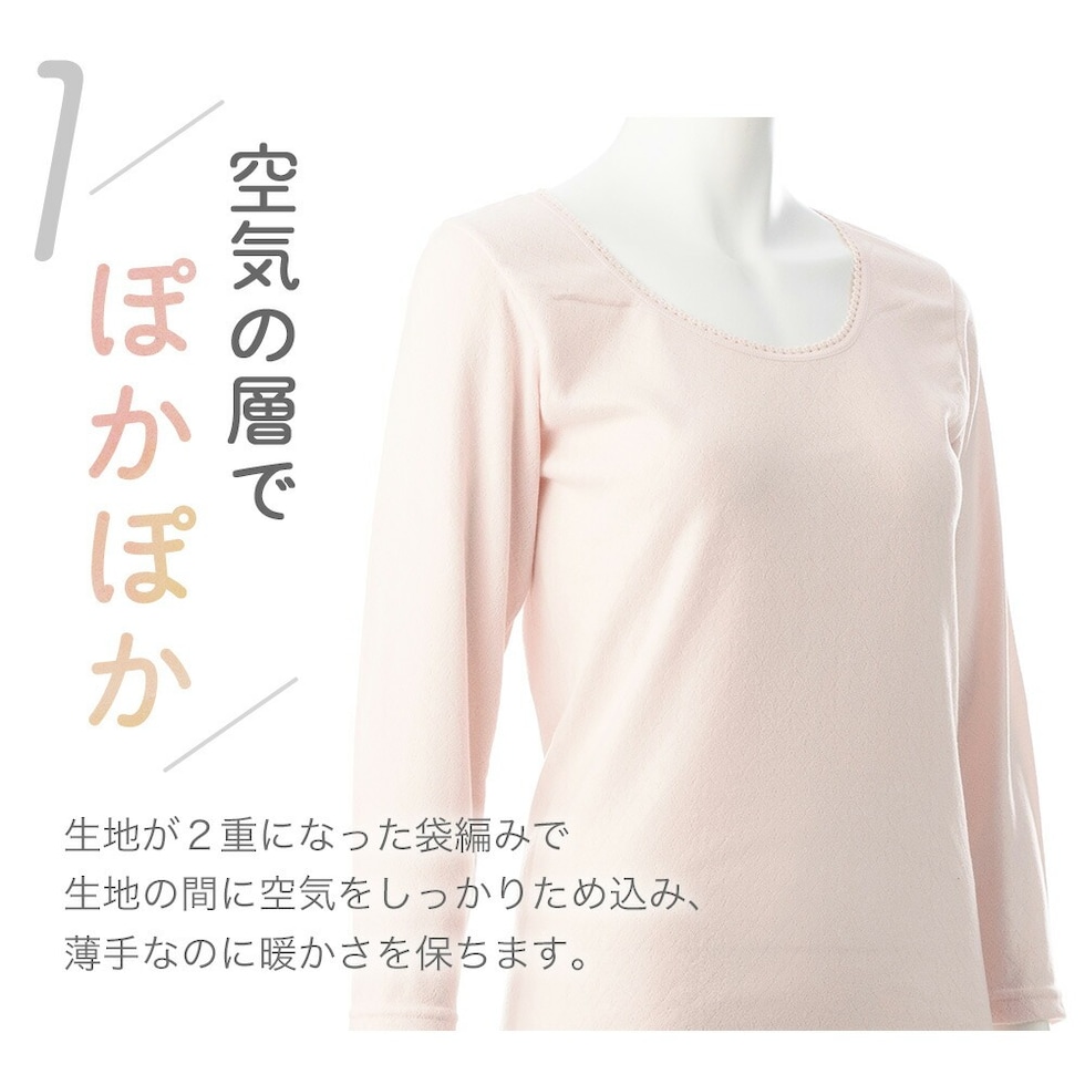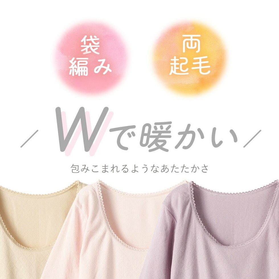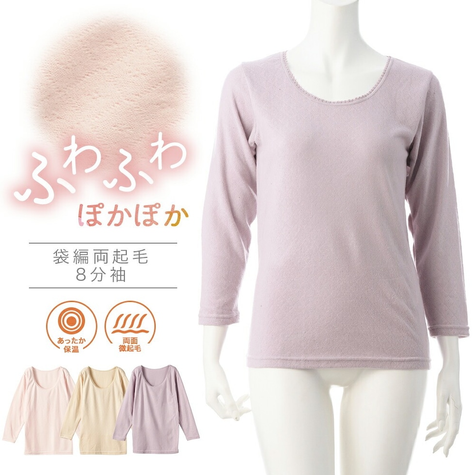 レディース インナー 半袖 裏起毛 袋編み 8分袖 あったか 両起毛 暖かい 微起毛 下着 肌着 婦人 女性 冷房対策 ベージュ/ピンク/パープル M/L/LL P6011T-E