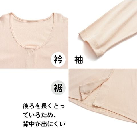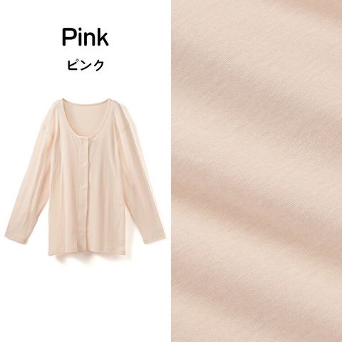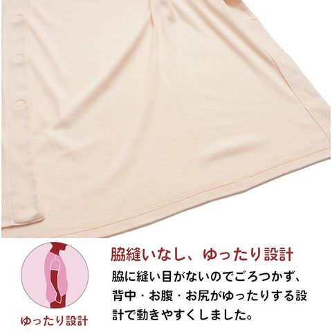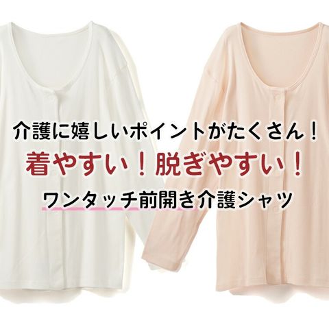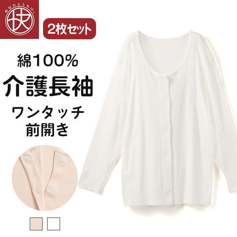 前開き 長袖シャツ 介護 綿100% レディース 介護用下着 ワンタッチ マジックテープ ボタン 抗菌防臭 シニア 婦人 女性 肌着 インナー 介護用品 入院用 病院用 こころよい ホワイト/ピンク M/L/LL Q9050T-E