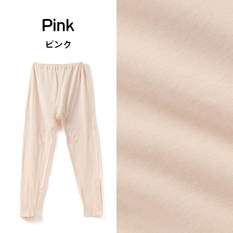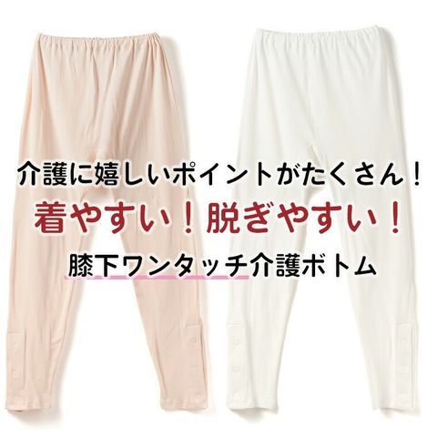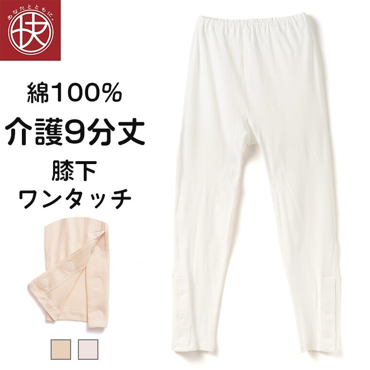 レディース インナー 膝下ワンタッチ 9分丈ボトム 介護下着 綿100% 介護ウェア 介護衣料 ワンタッチ マジックテープ ボタン 抗菌防臭 シニア 婦人 女性 肌着 介護用品 入院用 病院用 こころよい ホワイト/ピンク M/L/LL Q9055T-E