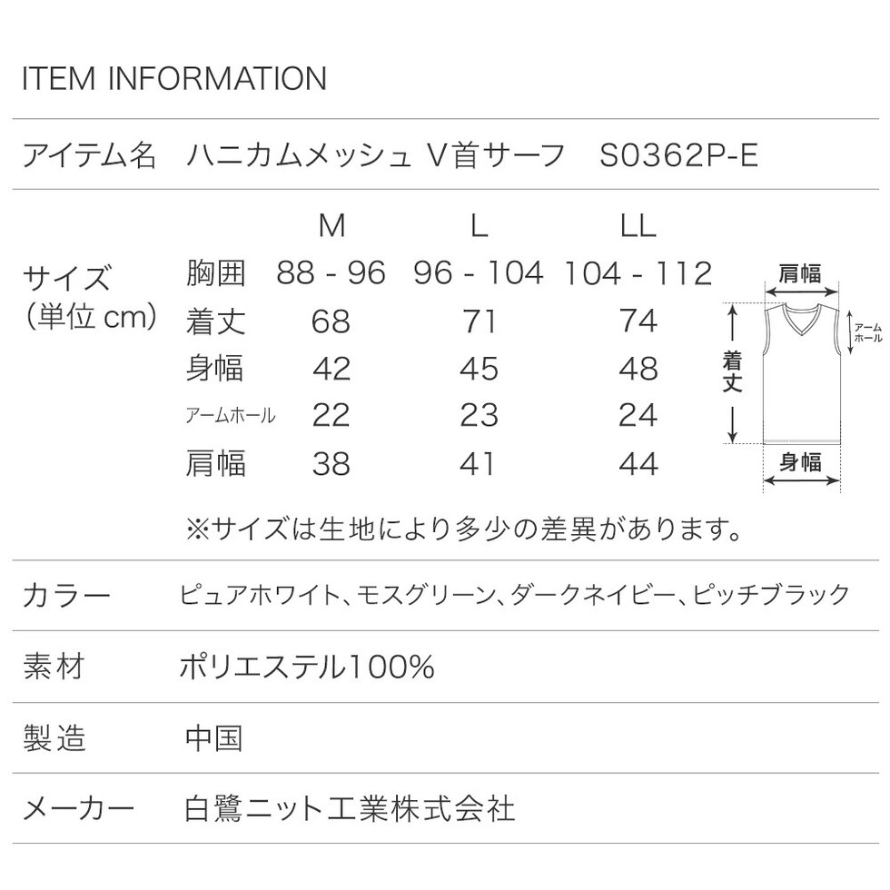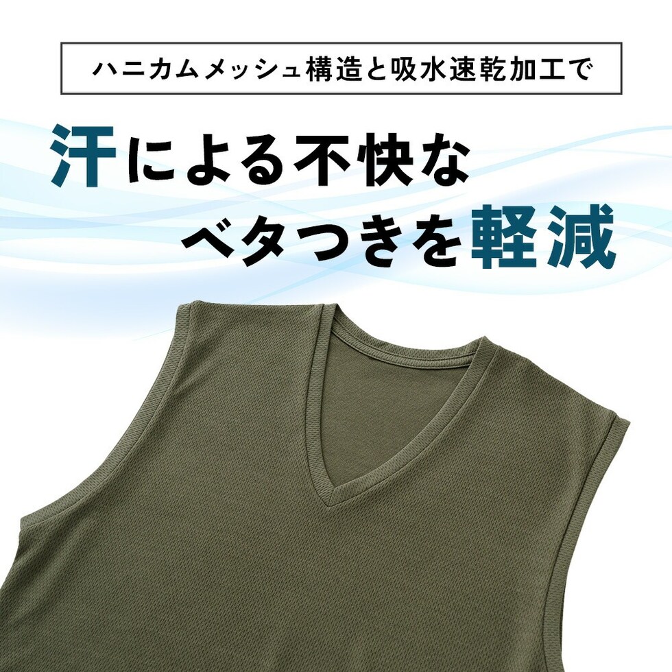 メンズ 吸汗速乾 ハニカムメッシュ インナーシャツ 春夏 鹿の子 V首 サーフ 男性 肌着 紳士 下着 軽量 24SS ピュアホワイト / モスグリーン / ダークネイビー / ピッチブラック M/L/LL S0362P-E 涼しい