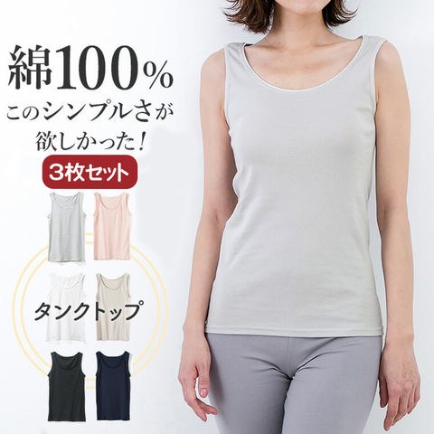 綿 100%の タンクトップ 3枚セットでお得!インナー シャツ レディース コットン 100 抗菌 防臭 シンプル ベーシック 年間 ノースリーブ 防災 袖なし M/L/LL T5031N-RT