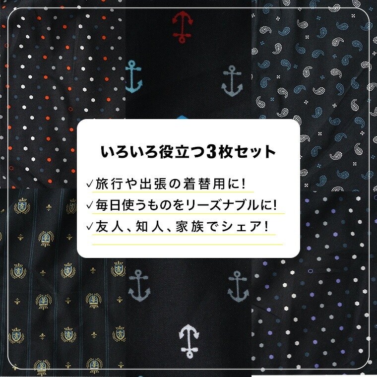 メンズ トランクス 3枚組 Aセット 綿100% 福袋 大きいサイズ 下着 おまかせ プリント柄 パンツ 前開き M4296C-RT