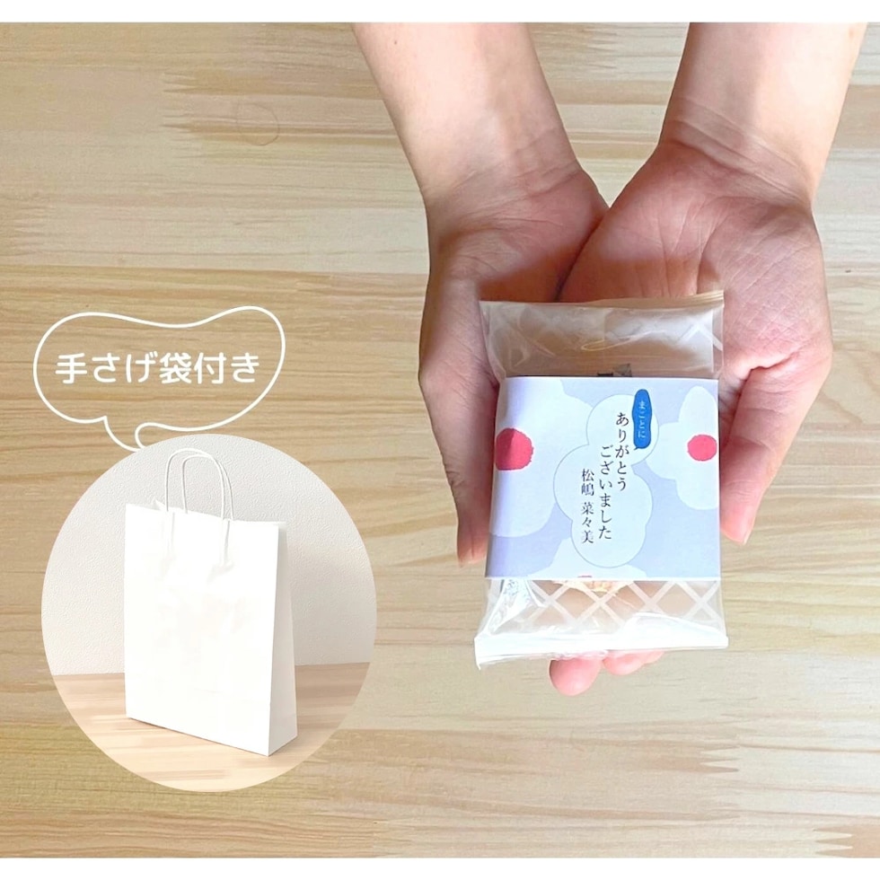 選べるデザインのしにメッセージ&お名前をつけて。会えなかった方のデスクの上にもおいておけます。メッセージは、(お世話になりました、ありがとうございます、ほんの気持ちです)など今までの感謝を伝える言葉。そして、新しいところには、「これから よろしくお願いします」と、ご挨拶の言葉とお名前が入れられます。