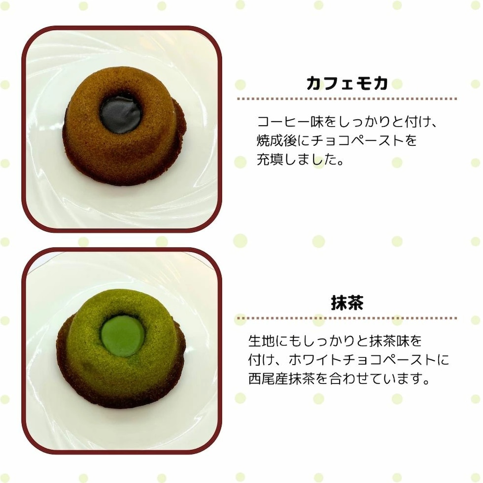 ふんわり薫るコーヒー風味のフィナンシェ生地をしっとりと焼き上げ、チョコを添えて仕上げました。フランスのカフェを思わせるちょっぴりビターなテイストです。
