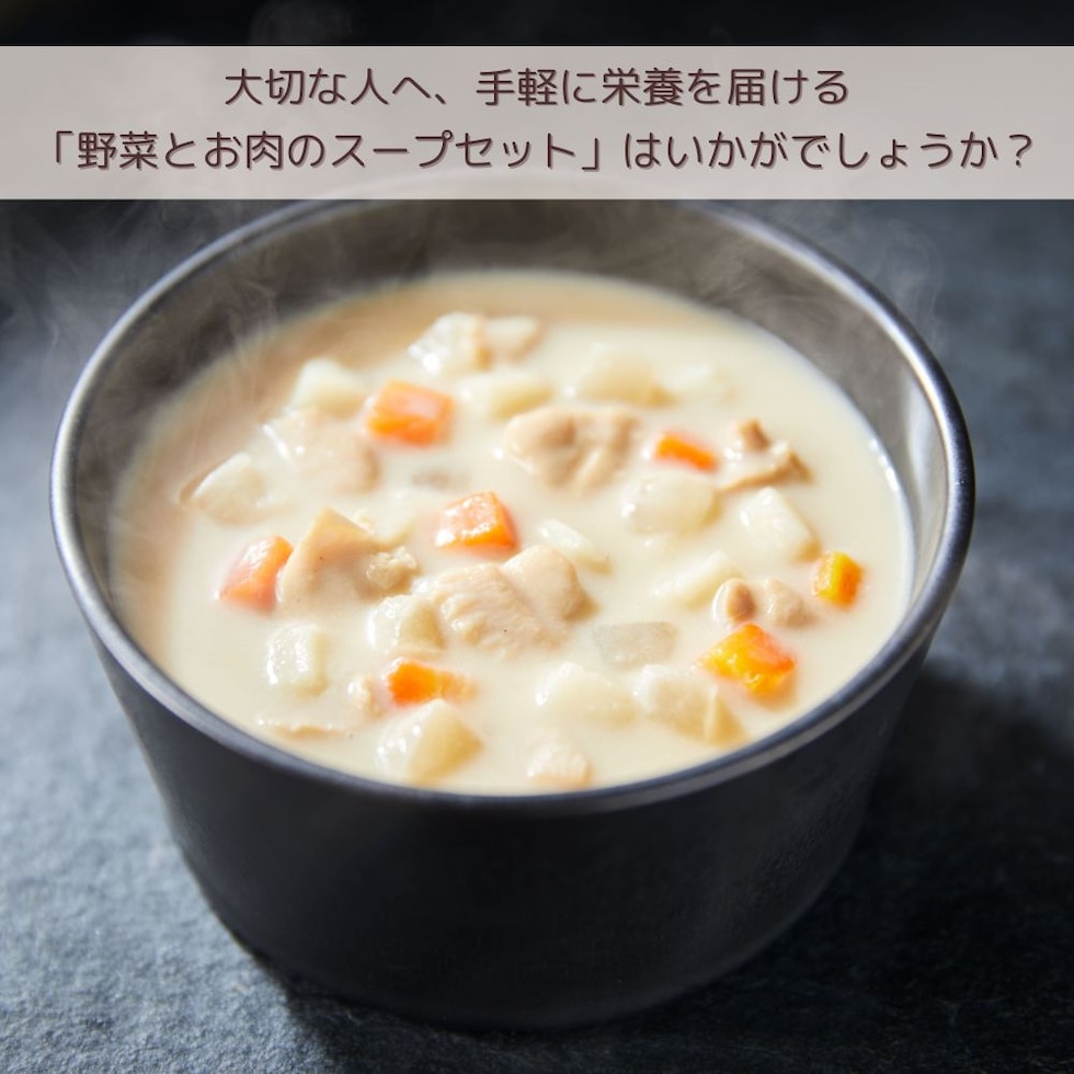 大切な妊婦さんへ、手軽に栄養を届ける「野菜とお肉のスープセット」はいかがでしょうか?厚生労働省のガイドラインに基づき、1食あたりの食塩相当量を2.4g以下に抑えた、体に優しいスープを詰め合わせました。