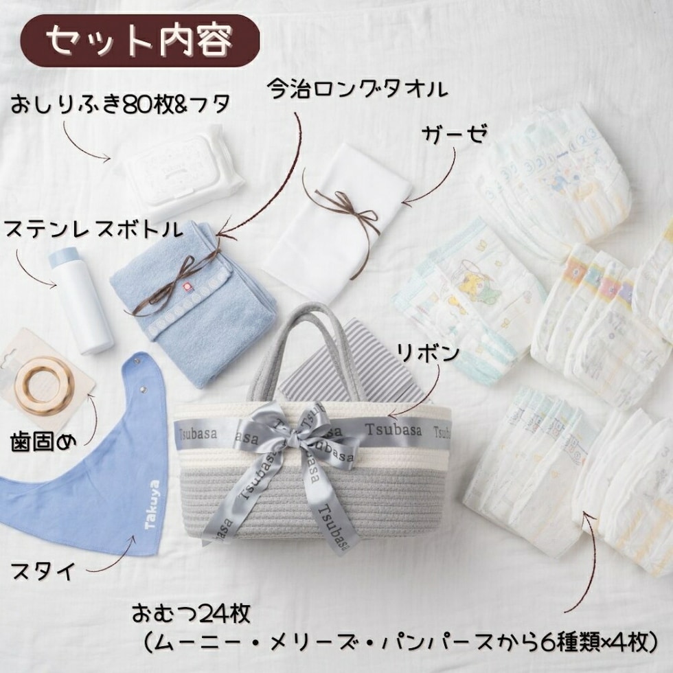 男の子・女の子どちらにも対応可能。 品質も安心。 特別な名入れおむつケーキを、スマートに贈れます。