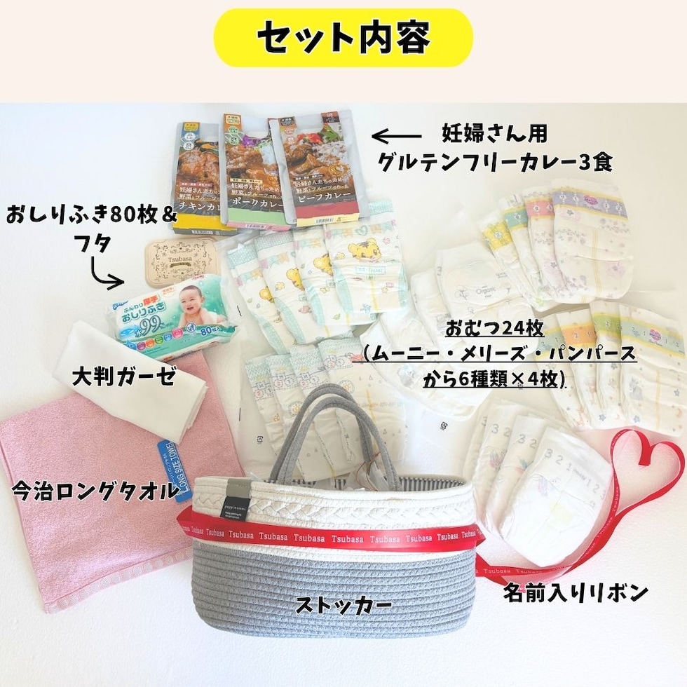 【住所不要】出産祝い おむつケーキ 高品質おむつ おむつストッカー マタニティフード付き 選べるギフト LINEで贈れる MeGiftカスタム