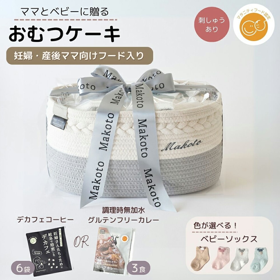 【住所不要】出産祝い 名入れおむつケーキ おむつストッカー Me-Giftカスタム LINEで贈れる ソーシャルギフト マタニティーフード プラス 刺しゅうあり
