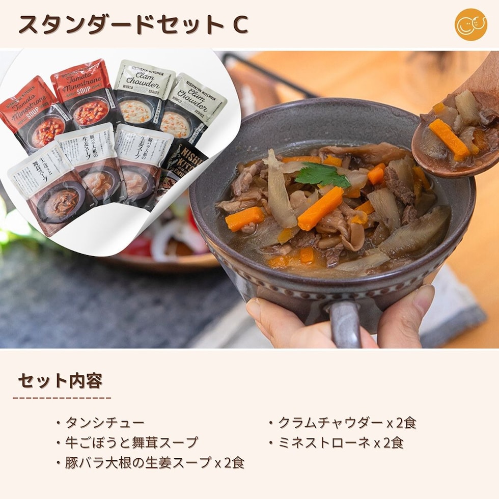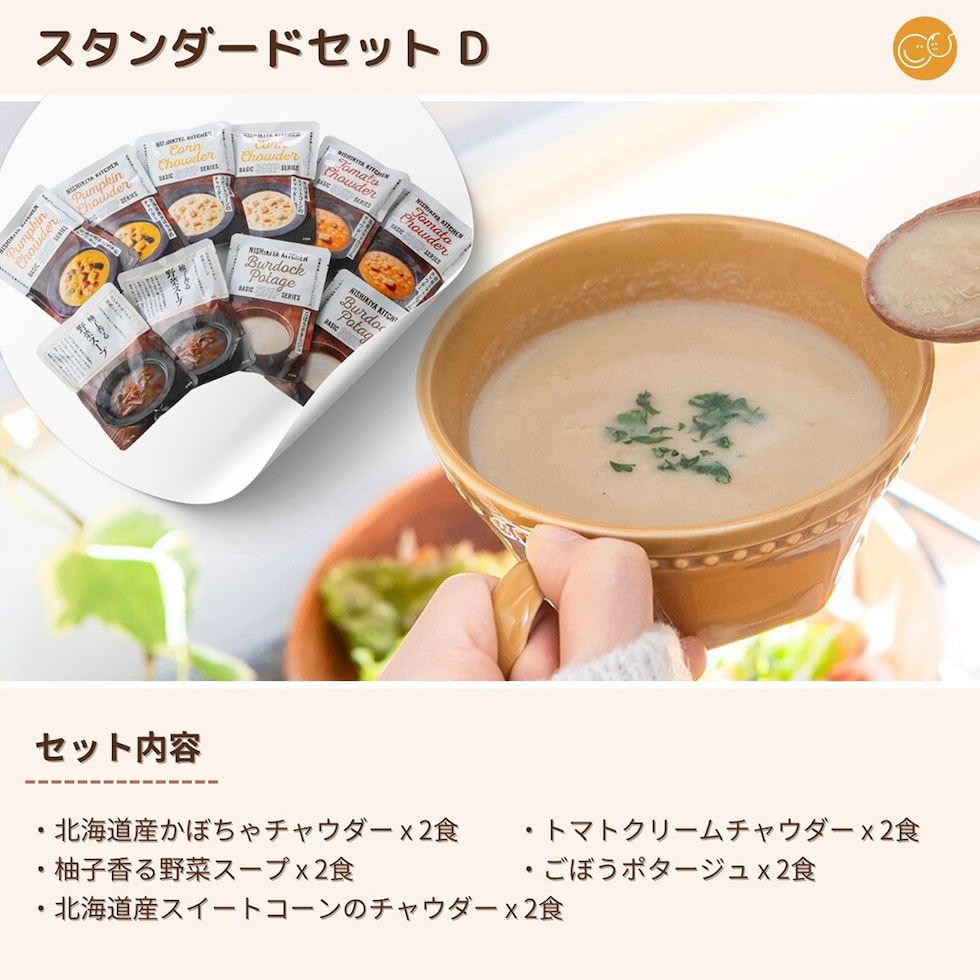 | 先様へのお届け商品 | スタンダードセットA : ビーフ・ポーク・チキン各2食 + デカフェ 3袋 、 スタンダードセットB : ビーフ4食、ポーク・チキン各1食 + デカフェ 3袋 、 (かっこ)内は食塩相当量 スタンダードセット:C ( ミネストローネ180g ( 1.5g )、豚バラ大根の生姜スープ170g ( 1.5g )、クラムチャウダー180g ( 1.7g ))×2、(タンシチュー180g ( 1.4g )、牛ごぼうと舞茸スープ170g ( 1.7g ))×1、合計:8食 ベビー & ご挨拶お祝いギフトランド 「オリジナルデカフェ15g」1袋 スタンダードセットD( 北海道産かぼちゃのチャウダー180g ( 0.9g )、北海道産スイートコーンのチャウダー180g ( 1g )、柚子香る野菜スープ170g ( 1.6g )、国産トマトクリームチャウダー180g ( 1.7g )、ごぼうポタージュ160g ( 0.7g ))×2、合計:10食 ベビー & ご挨拶お祝いギフトランド 「オリジナルデカフェ15g」1袋 ※ 本製品の仕様・セット内容等、予告なく変更すること がございますの であらかじめご了承ください。 |