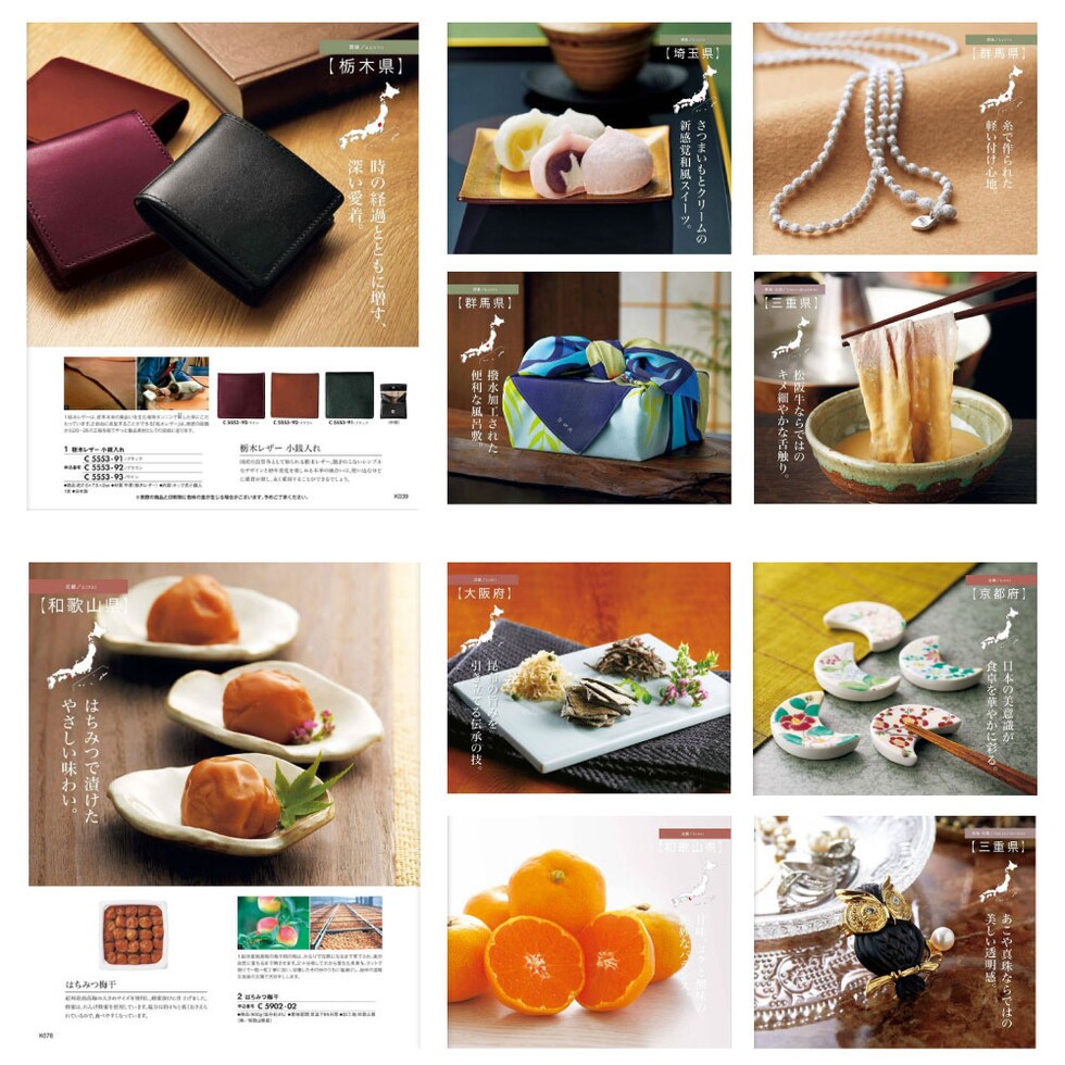 日本全国47都道府県から、土地の魅力が詰まった「美味・名品」を厳選。 豊かな自然と風土に育まれ、職人の技と知恵が息づく、 その土地ならではの一品を集めたカタログギフトです。