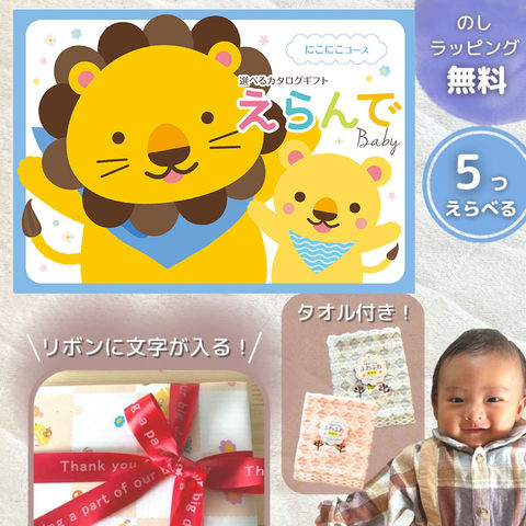 【出産祝い ベビー向け】 5つ選べるカタログギフト えらんで〈にこにこコース〉クインティプルチョイス