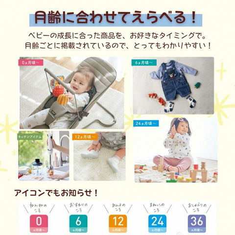 食育・知育・お世話アイテムまで幅広く揃い、どんなご家庭にも喜ばれる内容です。