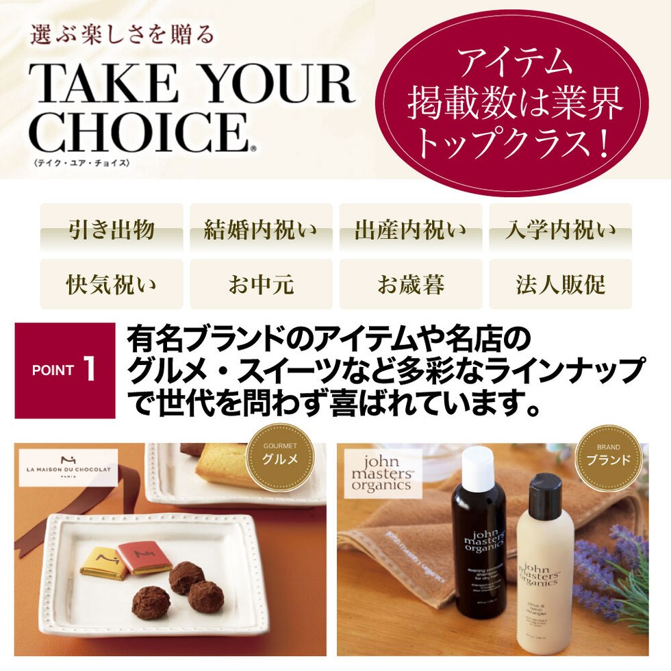 グルメ・生活雑貨・ファッション・体験ギフトなど、