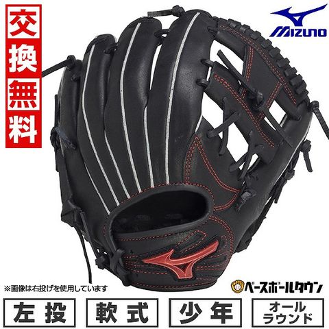 【交換往復送料無料】 野球 グローブ 少年軟式 左投げ ミズノ MIZUNO WILLDRIVE RED IBE オールラウンド用 サイズM 2年生 3年生 4年生 ブラック 1AJGY32420 型付け可能(G) キャッチボール