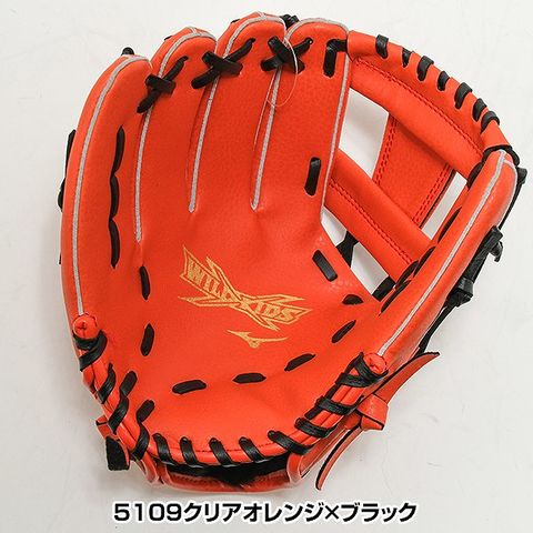 【交換往復送料無料】 野球 グローブ 少年軟式 左投げ ミズノ MIZUNO WILD KIDS ワイルドキッズ オールラウンド用 サイズ5S 幼稚園年中 クリアオレンジ×ブラック 1AJGY32900 型付け可能(G) キャッチボール キッズ