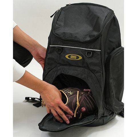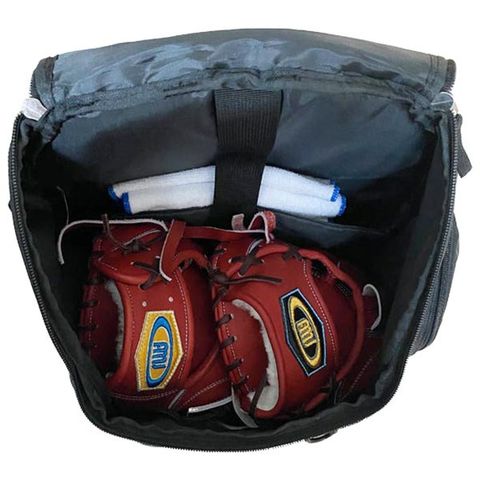 約40リットルの容量で、グローブ、ヘルメット、スパイク、ボール、練習着など、必需品を収納可能。