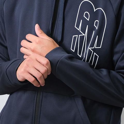 縦配置のフライングNBロゴが印象的なフルジップフーディー。■環境にやさしいリサイクルフリースで仕上げたアイテム